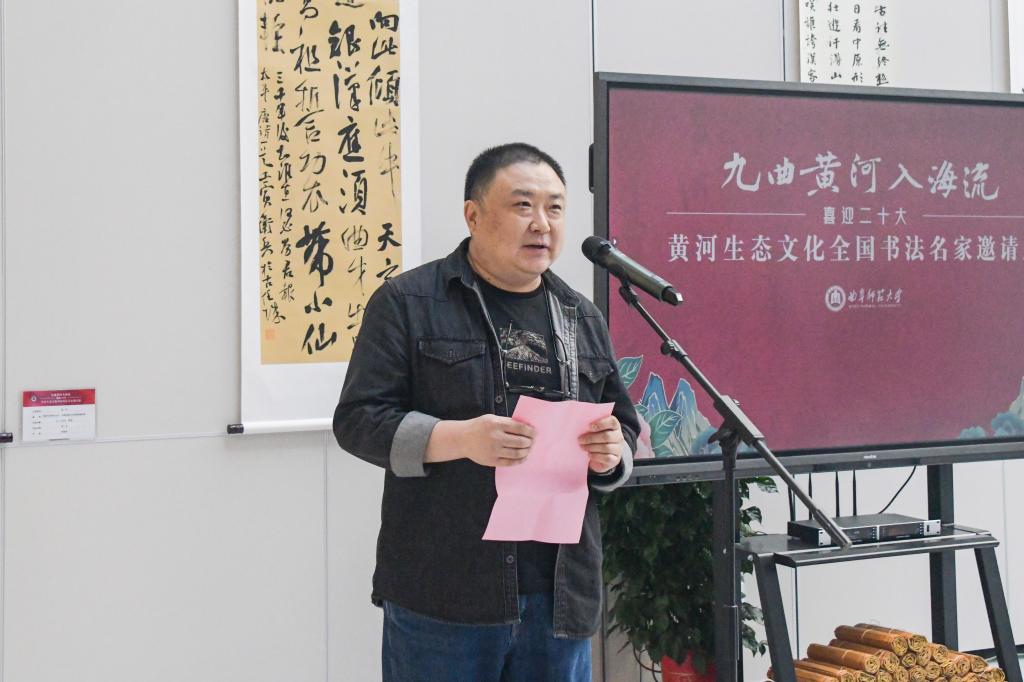 “黄河国家战略与传统文化‘两创’两大时代课题,为本次展览赋予了鲜明主题和丰厚内涵。”乐鱼(中国)党委书记邢光在开幕式上致辞,对莅临展览的各位领导和嘉宾表示热烈欢迎,向长期以来关心支持曲阜师大建设发展的各界朋友表示衷心感谢。邢光指出,曲阜师大认真践行习近平总书记关于中华优秀传统文化“两创”的重要论述和重要指示精神,深入贯彻习近平总书记在深入推动黄河流域生态保护和高质量发展座谈会上的重要讲话精神,在担当“为国弘文”使命、推动黄河生态研究等方面取得了丰硕成果。本次展览是曲阜师大喜迎党的二十大系列活动的重要内容,表达了全校师生与全国各地书法艺术家喜迎盛会的激情与豪迈。