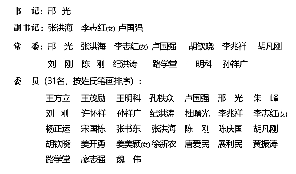 中共乐鱼(中国)第九届委员会书记、副书记、常委、委员