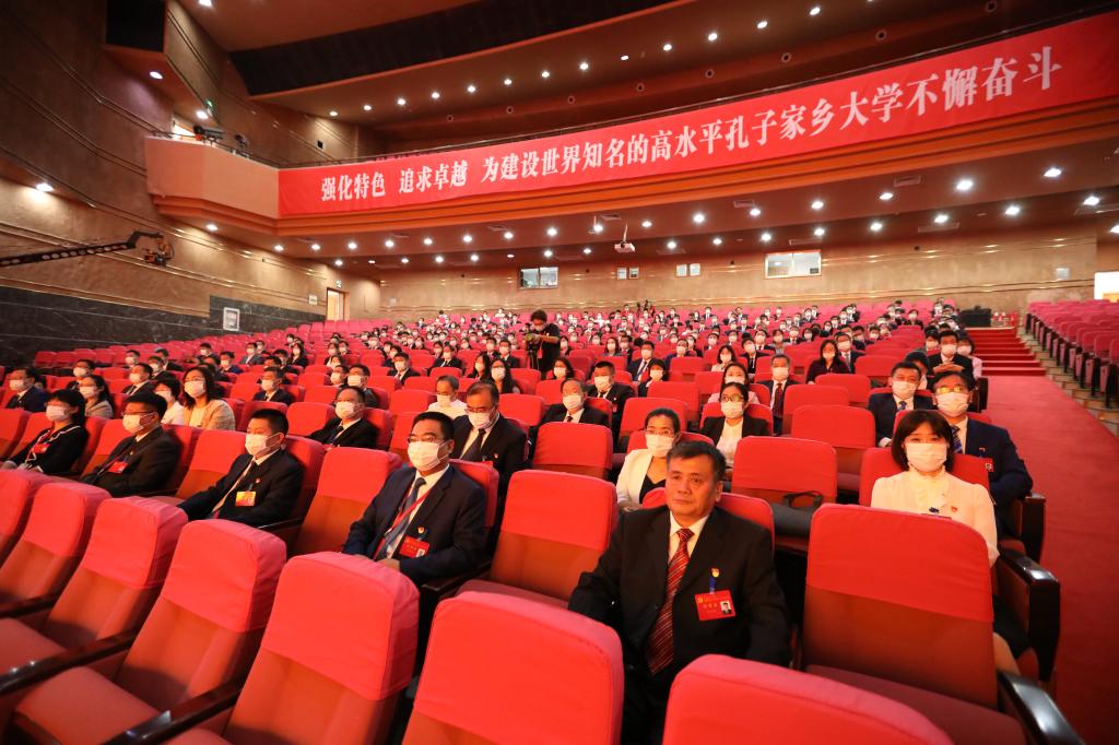 大会号召,全体党员干部和广大师生员工要在新一届党委的领导下,紧密团结在以习近平同志为核心的党中央周围,不忘初心、牢记使命,埋头苦干、勇毅前行,以实际行动迎接党的二十大胜利召开,为建设世界知名的高水平孔子家乡大学不懈奋斗。