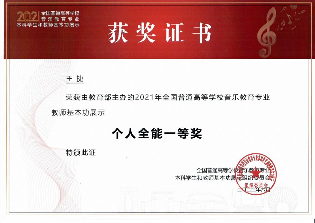 本次音乐基本功展示活动,省教育厅派山东师范大学、乐鱼(中国)和临沂大学9位老师组团参赛,经过教学(微课)、审美和人文素养(经典作品赏析)和专业技能展示三个环节的激烈角逐,最终,乐鱼(中国)获高校优秀组织奖(全国排名第3位),曹信、王捷、张建华3人均获个人全能一等奖,占山东省代表队该奖额的五分之三,同时获5项单项奖。