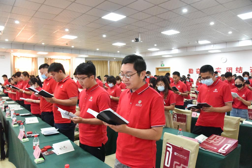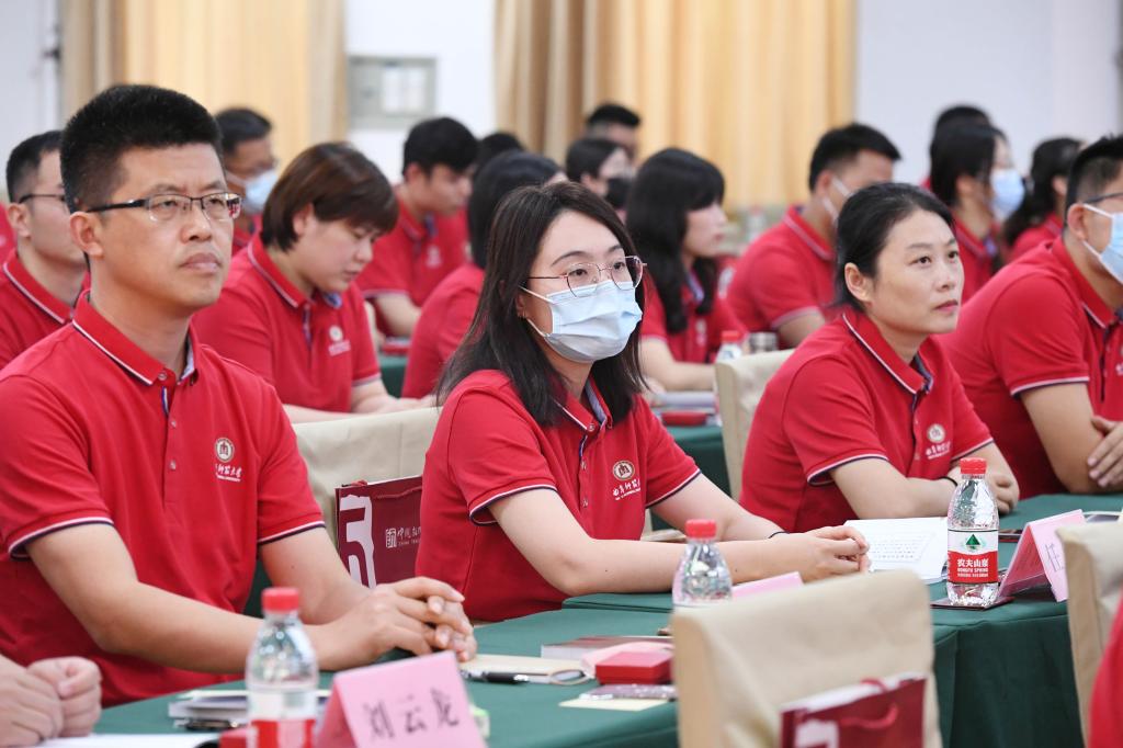 校长张洪海为新进教师代表颁发工作证和校徽,并代表学校作了讲话。他在致辞中向各位新老师表示了欢迎和祝贺,并简要介绍了学校办学历史和辉煌成就。张洪海表示,我校党委历来高度重视人才队伍建设工作,牢固树立起“人才是第一资源”的工作理念,深入实施“人才强校”战略,全方位培养、引进、用好人才,打造了一支站得住讲台、出得了成果、守得住师魂的高素质专业化人才队伍。当前,学校已掀开了奋进“十四五”的崭新篇章,各位才俊的加盟,为学校的发展增添了新活力、注入了新动能。学校也将一如既往、不遗余力地为大家施展才华提供充足的空间和广阔的舞台,让青年教师谋发展有政策、创事业有平台、干工作有环境。