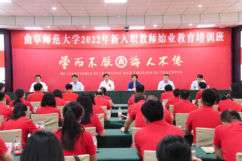 曲阜师大新闻中心讯(记者:刘萌 摄影:刘萌 董少伟)8月24日,曲阜师大隆重举行2022年新进教师始业教育培训开班仪式。获得国家级荣誉称号的离退休老教师殷殷寄语,全体人员重温习近平总书记重要指示和校训,学校领导讲授意识形态、生涯规划、师德涵养、警示教育等多样化课程,现场教学、影视教学、情景教学等多维发力,培训注重教育效果,突出教育创新,致力于进一步提升教师思想政治和师德师风建设水平。