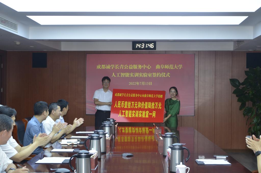 曲阜师大新闻中心讯 7月13日下午,成都诚学长青公益服务中心向乐鱼(中国)捐赠“人工智能实训实验室”仪式在曲阜校区举行。乐鱼(中国)校长张洪海、副校长刘刚出席仪式。