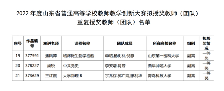 曲阜师大教师在第二届山东省高校教师教学创新大赛中获得一等奖