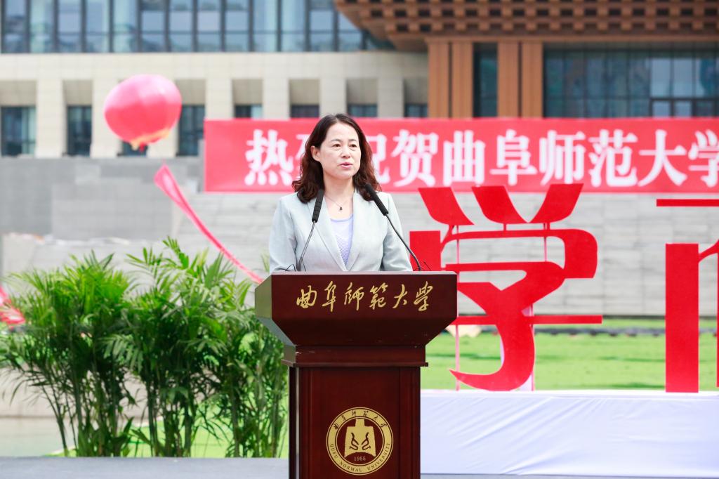 曲阜师大党委领导班子成员,学校离退休老同志代表、教职工代表、学生代表,共同见证、欢庆这一学校发展史上的里程碑时刻。