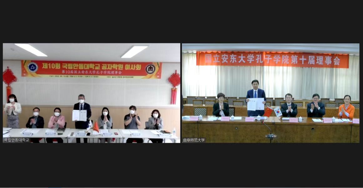 曲阜师大新闻中心讯 5月13日,乐鱼(中国)与韩国国立安东大学以视频方式召开了国立安东大学孔子学院第十届理事会。曲阜师大校长张洪海,国立安东大学校长权纯泰出席会议,安东孔院韩方院长金炳圭、中方院长王秀卿以及中外方理事会成员、孔子学院相关工作人员参加了会议。
