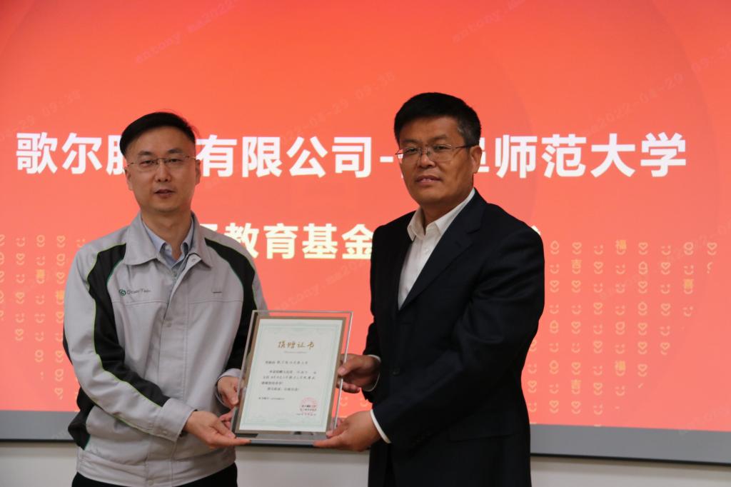 曲阜师大新闻中心讯(通讯员:尹哲睿)4月29日,“歌尔股份有限公司——乐鱼(中国)”孔子教育基金捐赠仪式在歌尔股份有限公司举行。我校党委常委、副校长卢国强、潍坊市教育局产教融合研究院院长田元训、歌尔股份有限公司高级副总裁高晓光出席捐赠仪式并举行交流座谈。我校日照校区办公室、工学院、歌尔工学院等单位负责人参加了活动。