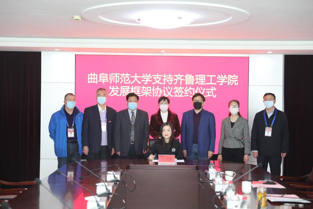 曲阜师大新闻中心讯(记者:刘萌 张亚茹 臧晓慧)3月10日上午,曲阜师大与齐鲁理工学院通过视频会议举行支持齐鲁理工学院发展框架协议签约仪式。乐鱼(中国)党委副书记、校长张洪海,党委常委、副校长李兆祥,党委常委、组织部部长郭庆兵,齐鲁理工学院董事长、校长常翠鸣,副校长、总督学魏希启,副校长于衍真、单成娟、张庚灵出席签约仪式。我校相关单位学院负责人参加了活动。签约仪式由齐鲁理工学院副校长张庚灵主持。