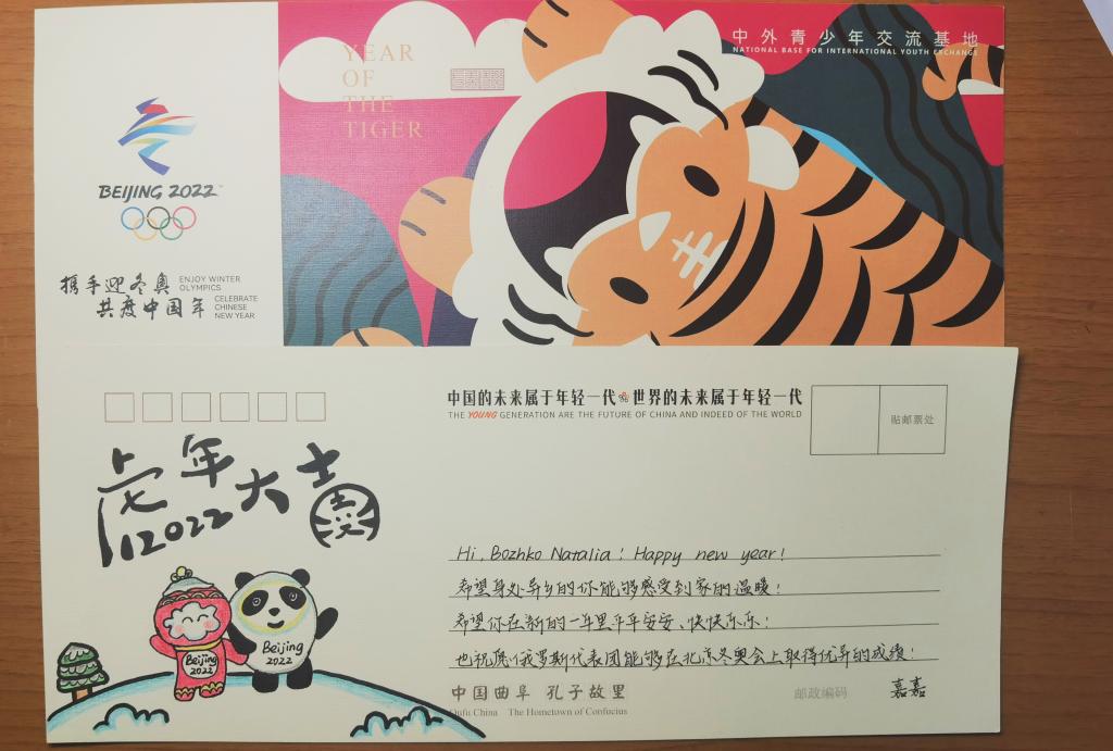 中外青少年交流基地办公室专门设计了“携手迎冬奥·共度中国年”主题明信片,中外联谊青年分别用中文和本国语言书写,表达对新春和冬奥的美好祝愿。“我们相互之间寄递了明信片,表达彼此的友谊,同时这些融入冬奥和春节元素的明信片,也让外国青年朋友更近距离地感受到了北京冬奥会和中国文化的魅力”参加此次活动的乐鱼(中国)学生金瑞说到。
