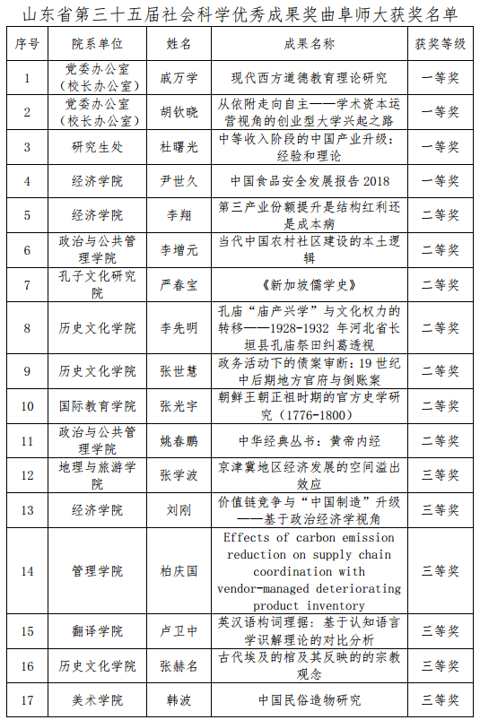 曲阜师大在山东省第三十五届社科优秀成果奖评选中取得佳绩