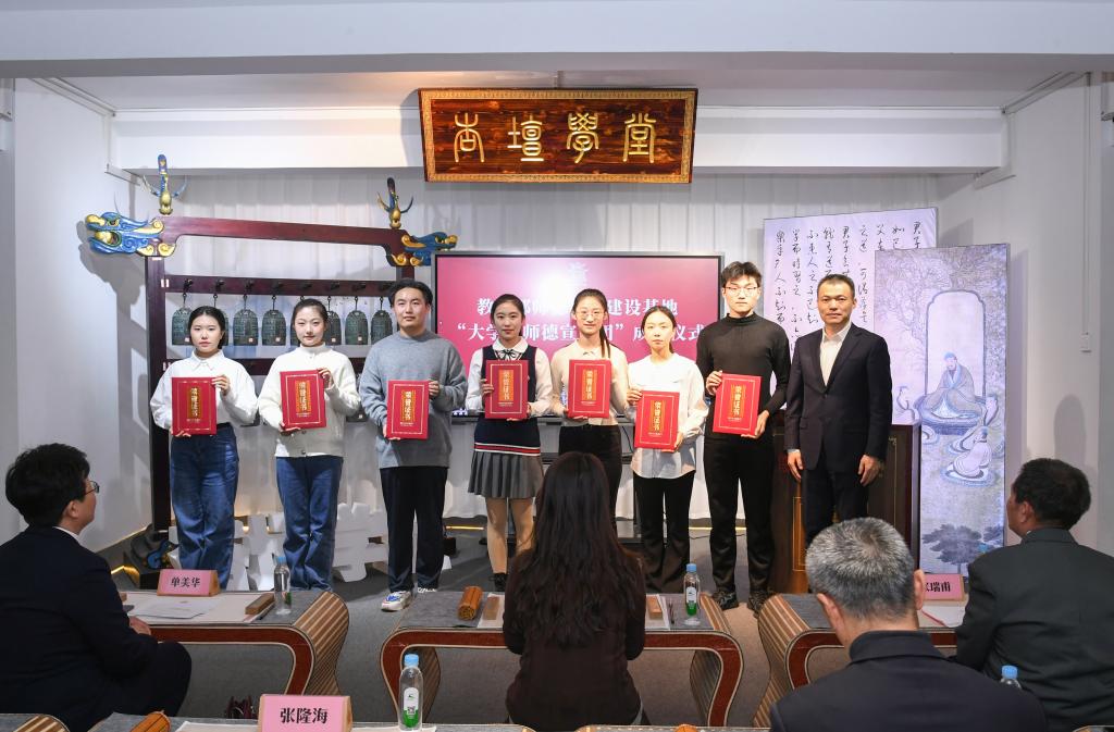 曲阜师大新闻中心讯(记者:刘萌 摄影:董少伟 郭力)“我们以师道传承人的身份,在教师博物馆,赓续民族文化记忆,保护教育历史遗产,涵养教师精神家园;我们以当代师范生的名义,在国家师德教育基地,弘扬尊师重教传统,讲好名师大家故事,传播优良师德师风。”12月8日,教育部师德师风建设基地(乐鱼(中国))“大学生师德宣讲团”成立仪式在教师博物馆“杏坛学堂”举行,宣讲团的学子代表庄严宣誓,发出铿锵有力的青春誓言。