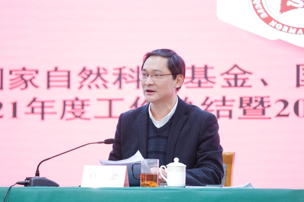 科学技术处处长杨月伟、社会科学处处长朱莉雅介绍2021年国家“两金”立项情况,就2022年申报工作提出建议