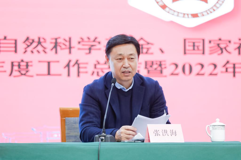 张洪海充分肯定了学校近年来科研工作取得的成绩,分析了学校科研工作面临的机遇与短板。针对2022年国家“两金”申报工作,他强调,一是要明确目标任务,增强紧迫感。各部门、各学院、各学科要在人才引育、团队建设、资金保障、平台支持等方面创新举措、共同发力,力争产出数量更多、质量更高的项目和成果。二是要科学规划布局,分层次突破。科技处、社科处作为科研项目统筹规划和指导部门,要全面掌握科研人员的科研承担与产出情况,精准分析各学科及相关教师的申报条件,进一步强化对整体申报布局的科学规划。三是要完善绩效机制,调动积极性。突出重点业绩的贡献导向、质量导向和绩效导向,加大对高层次项目、高水平成果的赋分权重,充分调动学院和教师获取国家基金项目的积极性。四是要完善管理体制,增强工作合力。进一步完善科研部门统筹、各职能部门协助、学院组织论证、相关学科把关、全体教师积极申报的国家基金项目申报体系。五是要拓宽视野格局,抓选题重点。全体申报教师,要深入研究国家基金在资助政策和科研导向方面的最新变化,理清思路,抓住根本,强化一流意识,瞄准学术前沿,大力提升基础研究和应用研究水平。六是要加强项目管理,强化成果产出。学校相关部门在深化科研管理“放管服”改革、给予项目主持人更多自主权的基础上,要进一步完善项目进度管理的制度措施,建立在研项目的提醒、督促机制。
