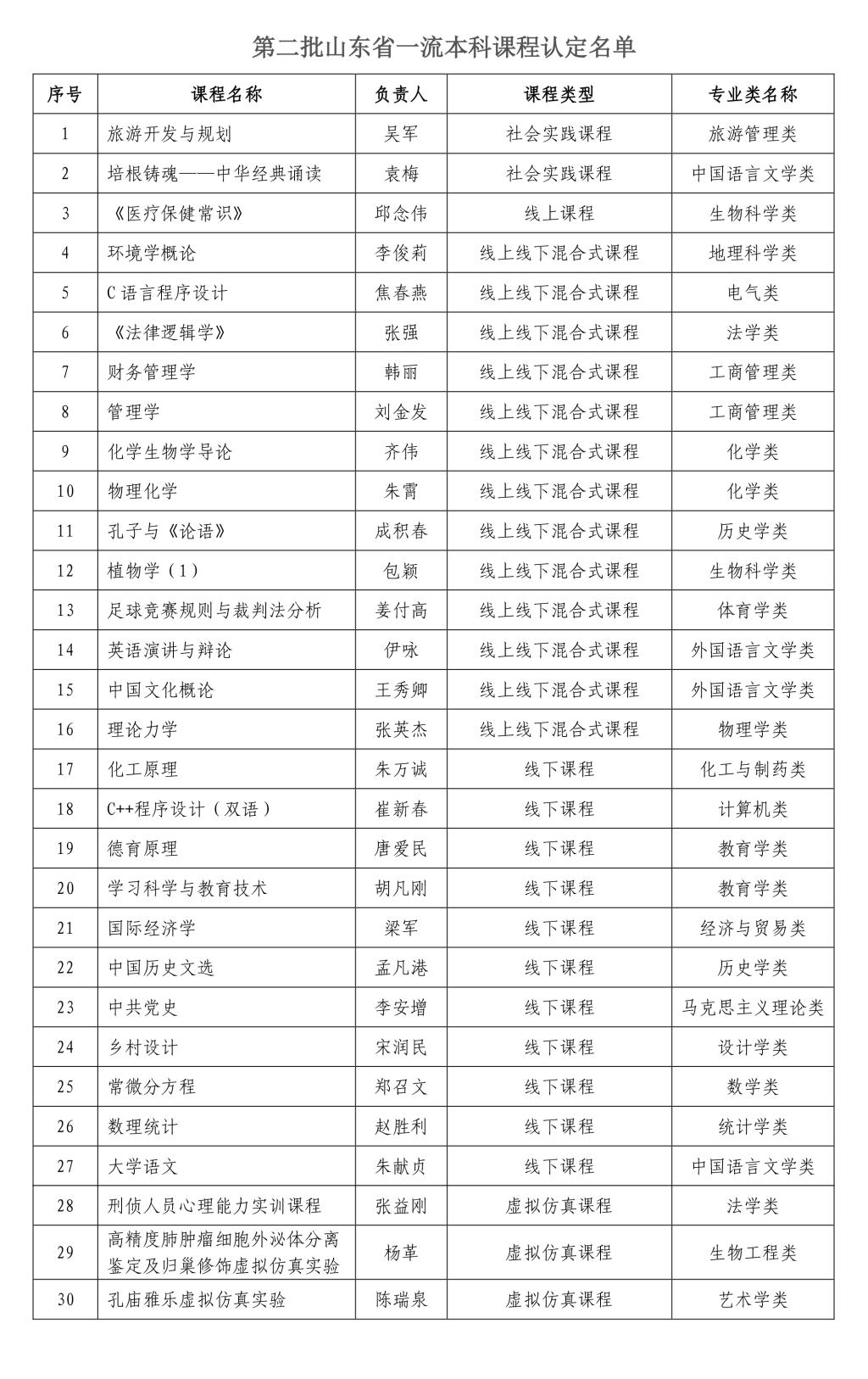 曲阜师大新闻中心讯 近日,山东省教育厅公布《关于公布第二批山东省一流本科课程认定结果的通知》,我校共30门课程被认定为第二批山东省一流本科课程。其中,社会实践课程2门,线上课程1门,线上线下混合式课程13门,线下课程11门,虚拟仿真课程3门。同时,17门课程拟推荐申报第二批国家级一流本科课程认定,其中社会实践课程2门,线上线下混合式课程6门,线下课程6门,虚拟仿真课程3门。我校省级一流课程认定总数和拟推荐申报第二批国家级一流本科课程总数位居省属高校前列。