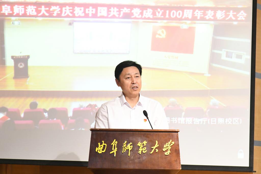 戚万学在讲话中首先代表学校党委,向全校各级党组织和全体党员,表示节日的祝贺和诚挚的问候!向所有荣获“光荣在党50年”纪念章的老党员同志们,向受到表彰的先进党组织和优秀个人,表示热烈的祝贺并致以崇高的敬意!戚万学指出,100年来,一代代中国共产党人,以力挽狂澜的担当和气魄,用鲜血和生命挺起了中华民族脊梁,建立了彪炳史册的不朽功勋,创造了一个又一个“中国奇迹”。党的十八大以来,以习近平同志为核心的党中央团结带领人民,开创了党和国家事业发展新局面,开启了实现“两个一百年”奋斗目标和中华民族伟大复兴中国梦的新征程。回望百年党史,我们深切感受到:没有共产党,就没有新中国;没有共产党的领导,就没有中华民族的伟大复兴。我们必须从百年党史中汲取信仰之力、信念之魂、信心之光,为实现中华民族伟大复兴的中国梦而不懈奋斗。
