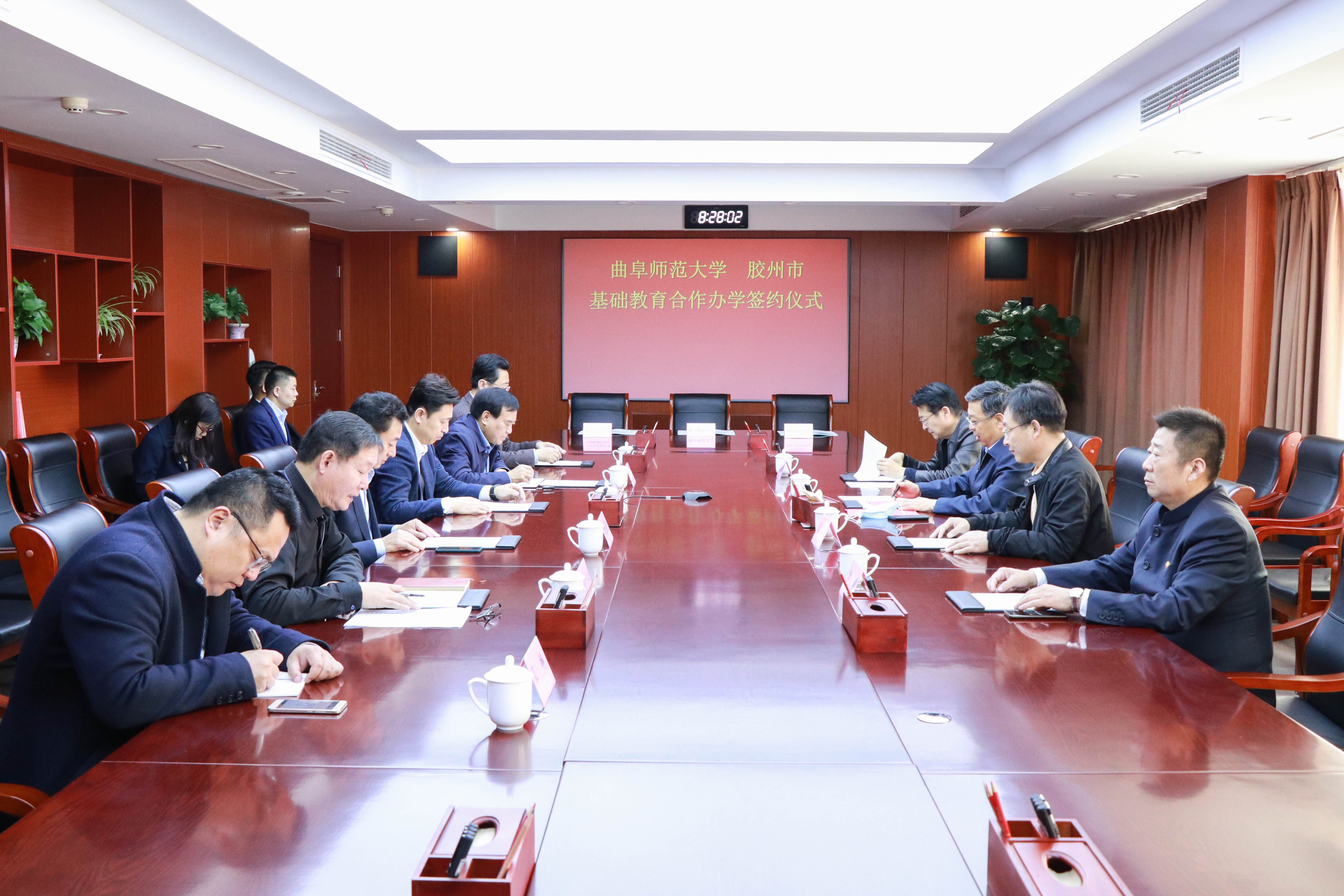 曲阜师大新闻中心讯(记者:李文振) 3月30日上午,乐鱼(中国)与胶州市基础教育合作办学签约仪式举行。青岛大沽河省级生态旅游度假区党工委书记、管委会主任李储程,曲阜师大党委副书记、校长张洪海,在仪式上致辞。曲阜师大党委常委、副校长冯冲、胶州市教育体育服务中心主任张俊堂与李储程,分别代表乐鱼(中国)、胶州市教育体育局、青岛大沽河省级生态旅游度假区管理委员会,签署了合作办学协议。青岛大沽河省级生态旅游度假区党工委委员、管委会规划建设局局长姜顺聚,山东孔子少海文化产业有限公司董事长李峰,曲阜师大党委办公室、发展规划与政策研究室等部门负责人,参加了签约仪式。仪式由曲阜师大国内合作处处长孔宪福主持。