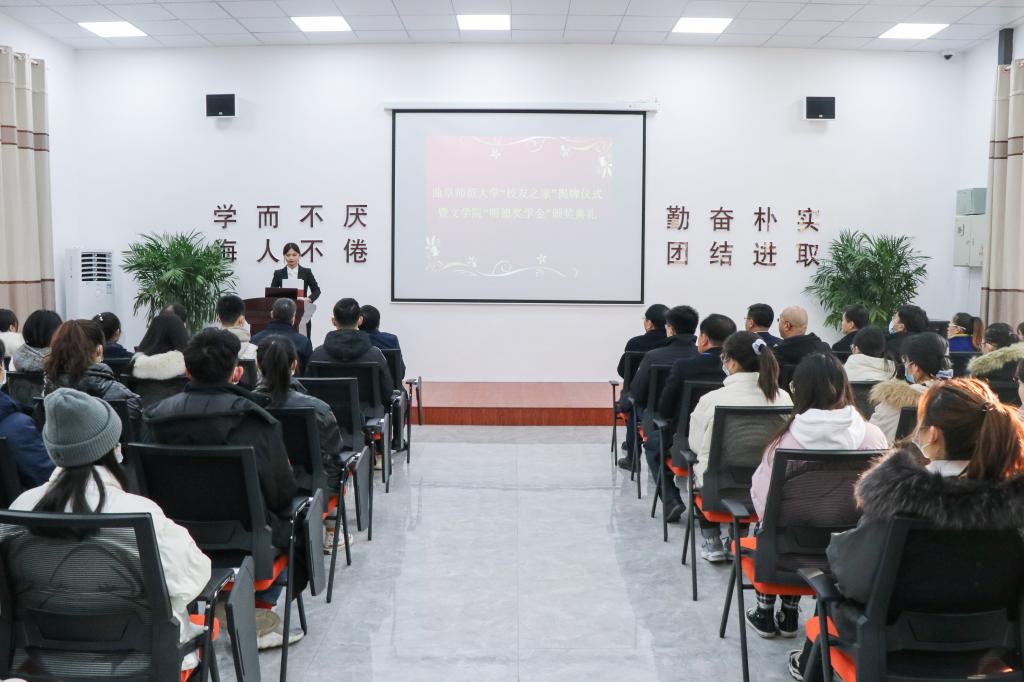 曲阜师大新闻中心讯(记者:李文振) 12月26日上午,曲阜师大举行“校友之家”揭牌仪式暨文学院“明德奖学金”颁奖典礼,学校党委常委、副校长冯冲,党委常委、宣传部部长张隆海,明德物业管理集团董事、荣誉主席孙久学,明德物业管理集团党委书记、董事长、曲阜师大校友会副会长刘德明,威海校友会会长周辉校友,青岛莱西校友会召集人刘显杰,天津校友会代表丁传勇、亓凯、陈宝荣,教师代表、山东政协委员桑哲等,出席仪式。
