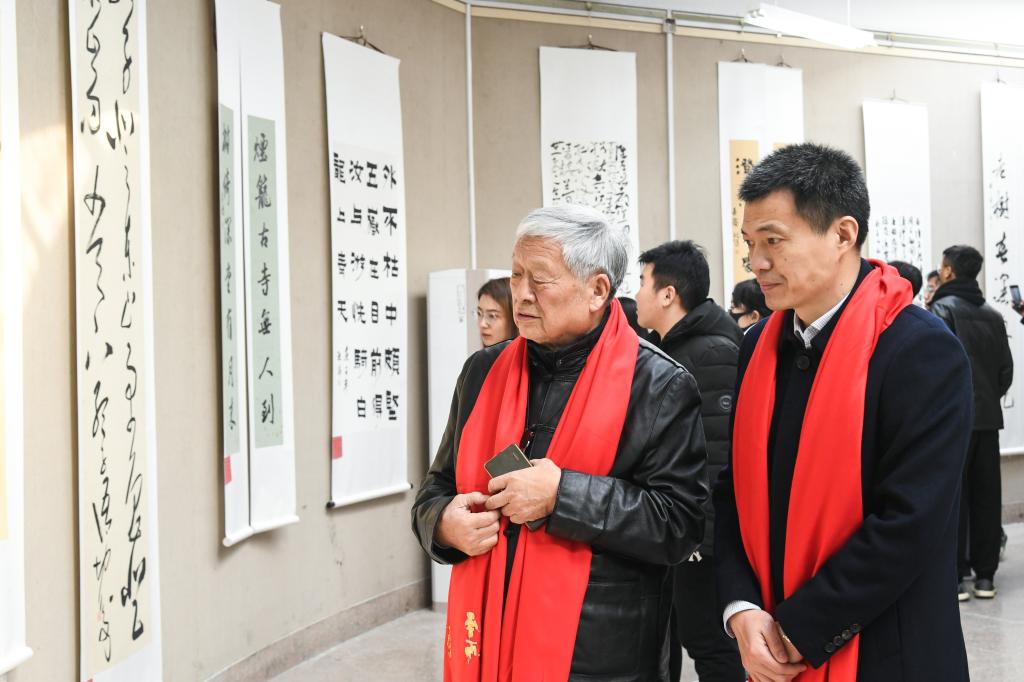 开幕式后,社会各界书道名流和师生一起参观了书法作品展。大家被一幅幅精美的作品深深吸引,他们或驻足欣赏,或拍照留念,对于展出作品给予了高度评价。据悉,此次展览共遴选出书法精品65幅,包括篆、隶、真、行、草等各种书体,形制丰富多样,有条幅、斗方、横幅、长卷、扇面、对联和中堂等,具有很高的艺术和审美价值。每一幅作品都倾注了书法家们的真情,真切地体现了他们对艺术的探索和对曲园六十五华诞的美好祝福。