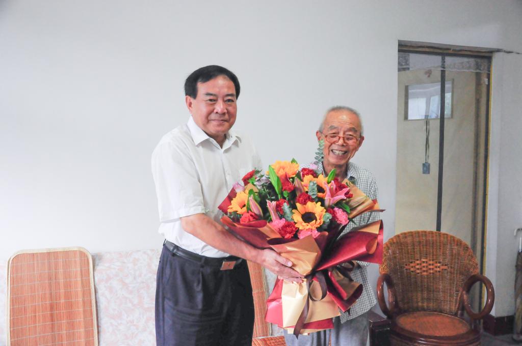 学校党委常委、副校长冯冲看望慰问退休教师代表骆承烈老师。