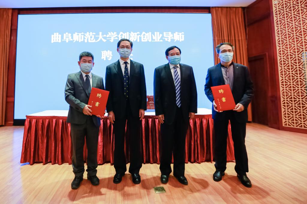 仪式上,朱险峰宣读了《中共曲阜市委、曲阜市人民政府关于推动校地融合发展的意见》;张洪海和彭照辉代表双方签署了校地融合发展全面合作协议;戚万学与山东东宏管业股份有限公司董事长倪立营,刘东波与山东晶导微电子股份有限公司董事长孔凡伟,分别为校企联合实验室揭牌;夏云杰、冯冲共同为山东圣阳电源股份有限公司副总裁隋延波、山东天工石油装备有限公司总经理李新华,颁发了大学生创新创业导师聘书;曲阜师大物理工程学院院长曹丙强与天博汽车零部件制造有限公司总经理王立峰,曲阜师大生命科学学院院长杨月伟与焦点生物医药有限公司总经理刘磊,分别签订了校企产学研合作协议。