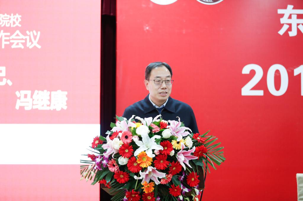 冯继康在会上讲话,他代表山东省委教育工委、省教育厅向会议的召开表示祝贺,对与会嘉宾的到来表示欢迎,对长期以来支持山东教育事业发展的各位同仁表示感谢,简要介绍了山东省近年来高等教育高质量发展成就。他表示,做好新时代高校宣传思想工作,要深入学习贯彻习近平新时代中国特色社会主义思想和党的十九届四中全会精神,牢记“立德树人”根本任务,坚守“为党育人,为国育才”初心使命,深入研究工作规律,坚持守正创新,推动高校宣传思想工作在改进中加强、在创新中提高。东南十一省(市、区)重点师范院校宣传、学生工作协作机制,对于深入交流、强化协同、相互促进,形成奋进合力具有重要意义。希望大家加强协调联动,畅通交往交流渠道,整合优势资源,形成更紧密、更快捷、更高效的沟通联系机制,为高等教育高质量发展做出新贡献。