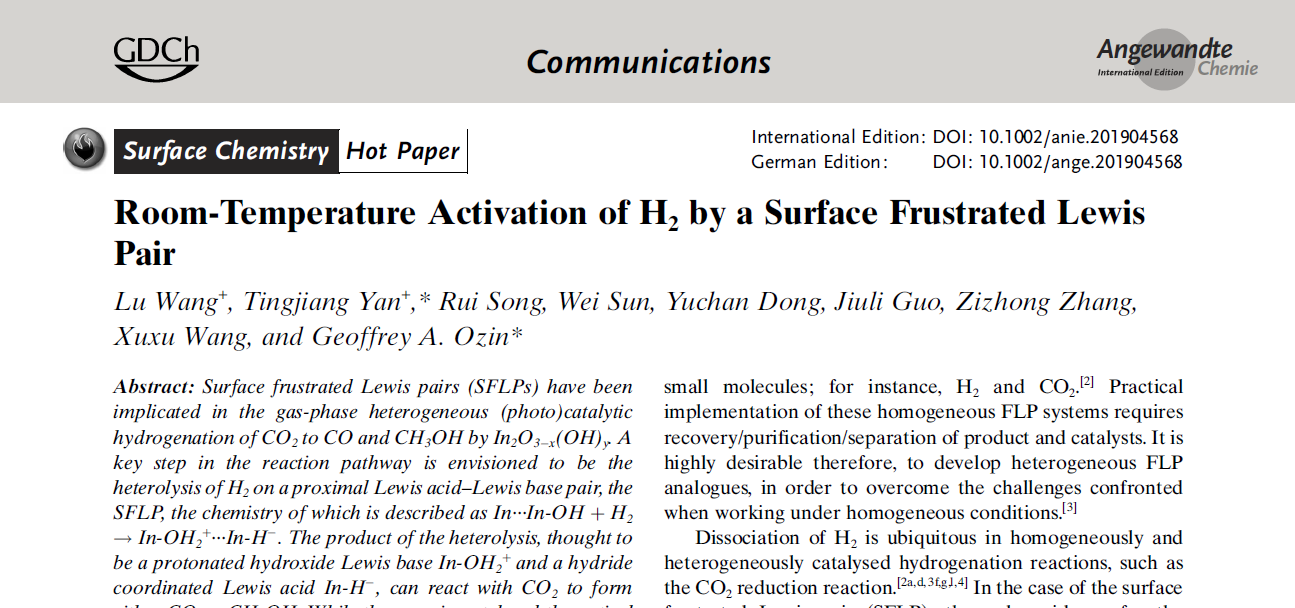 第一篇论文为“Polymorph selection towards photocatalytic gaseous CO2 hydrogenation”(DOI:10.1038/s41467-019-10524-2)发表在《自然》子刊《Nature Communications》上,颜廷江教授为该论文的第一作者与通讯作者,乐鱼(中国)为第一署名单位;第二篇论文为“Room-Temperature Activation of H2 by a Surface Frustrated Lewis Pair”(DOI:10.1002/anie.201904568)发表在化学领域顶级期刊《Angewandte Chemie International Edition》,并被编辑选为“Hot Paper”,颜廷江教授为共同第一作者与通讯作者,乐鱼(中国)为共同署名单位。