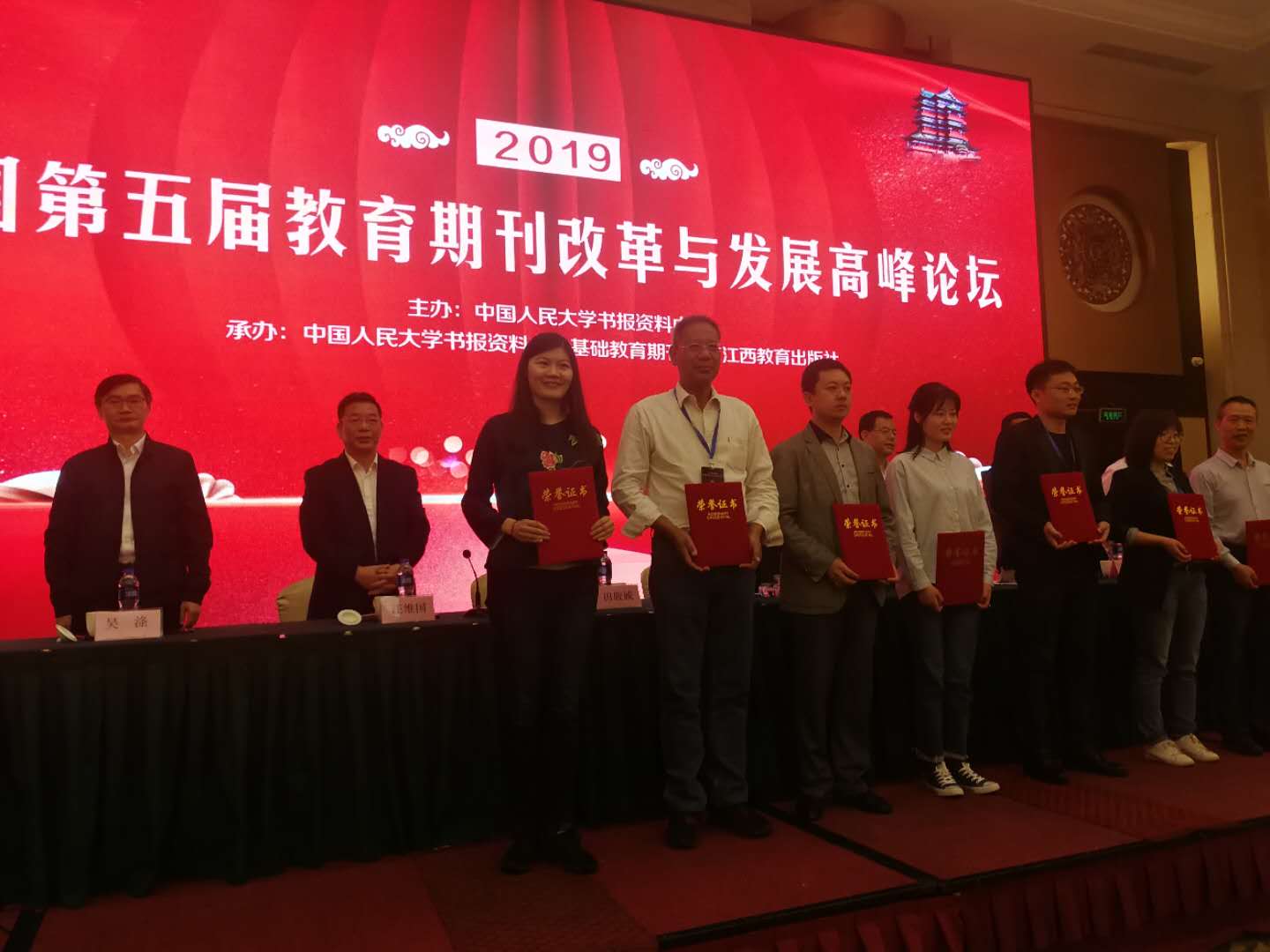 会上,全国48家教育类期刊被授予“复印报刊资料基础教育教学类重要转载来源期刊”荣誉证书,其中,中学数学类期刊仅有4家入选。我校《中学数学杂志》获此殊荣,《中学数学杂志》主编李吉宝参加论坛并接受颁奖。