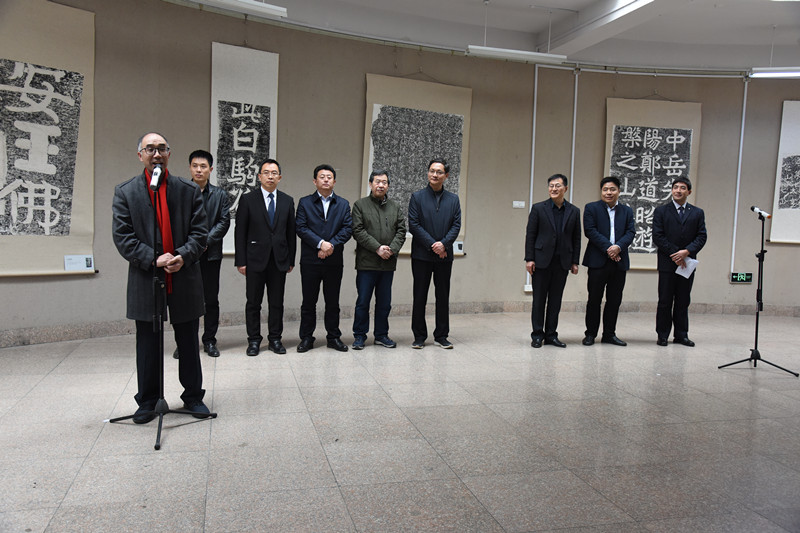 夏云杰对此次开展仪式表示热烈祝贺,对参展嘉宾的到来表示诚挚的欢迎。他指出,石刻艺术是造型艺术中的一个重要门类,在我国有着悠久历史。山东省石刻艺术博物馆作为我国第一座石刻艺术专业性博物馆,馆内珍藏了古代石刻拓片四千多幅,为推动全省乃至全国古代石刻艺术的研究做出了巨大贡献。希望以此次展览为契机,进一步加强我校书法学院与山东省石刻艺术博物馆的交流与合作,共同促进山东古代石刻艺术的发展。
