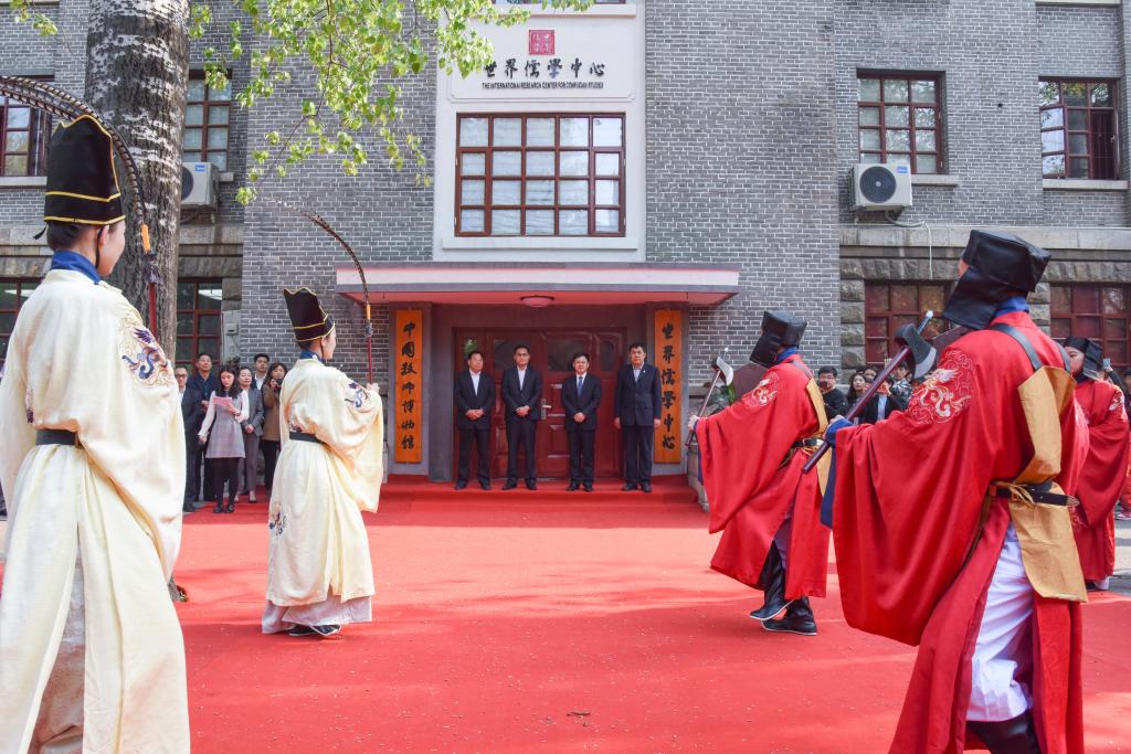 恰逢祭祀祖先、缅怀先人的清明时节,孔垂长先生来到学校后首先在孔子文化广场至圣先师孔子塑像前,与身着汉服、头顶儒冠的我校历史文化学院学子一起,举行了庄严的拜谒仪式。