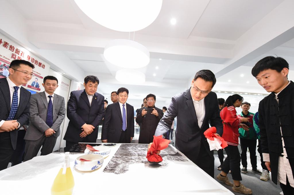 参观活动最后,孔垂长先生在馆内现场体验了碑拓艺术,并在馆前与曲园师生合影留念。