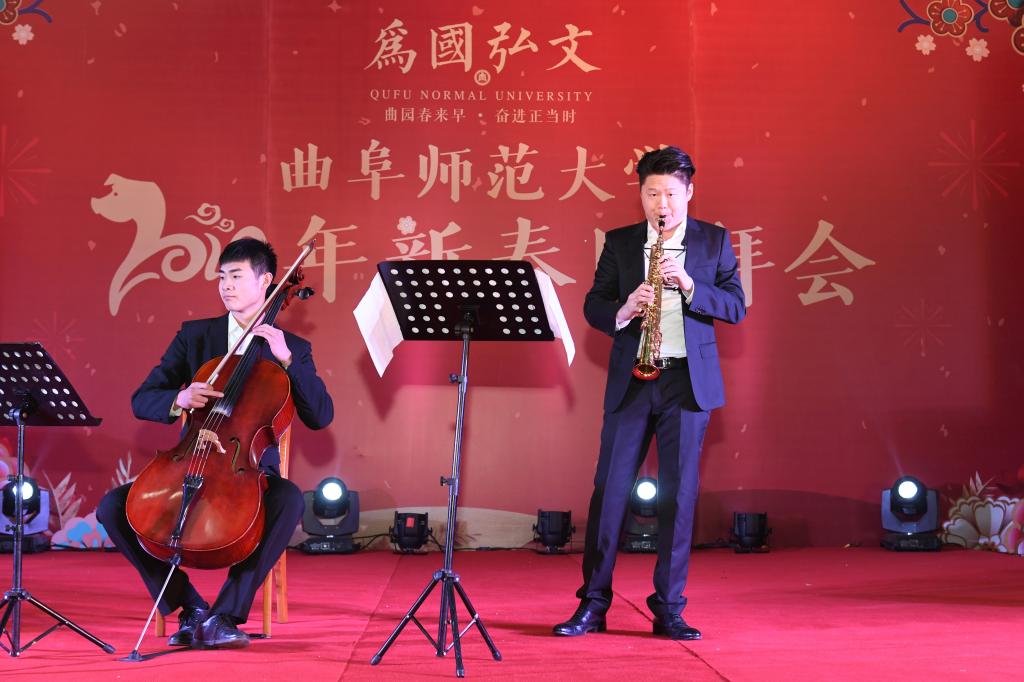 戚万学强调,所有的成就是每一位曲师人扎扎实实干出来的。曲园的教师够踏实够朴实,曲园的学生够勤奋够努力,学生学不厌,教师教不倦,是曲园生生不息、发展壮大的源头活水;曲园的干部能拼给力,成就了学校一件件大事;曲园的老同志老骥伏枥,时时对学校事业给予关注鼓励;曲园的校友够真诚够卖力,为学校发展的每一件事情尽心竭力。正是大家心心相印、心手相牵、守望相助,汇聚起了学校发展的强大力量。