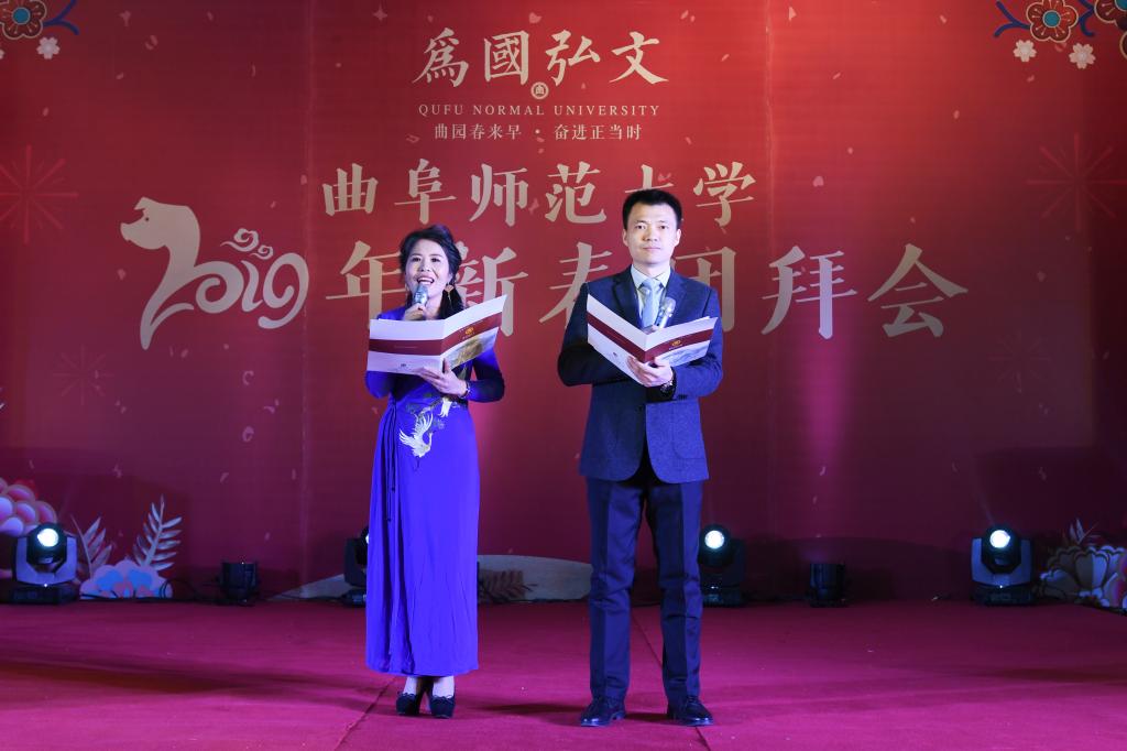 1月26日下午,我校隆重举行2019年新春团拜会,学校领导戚万学、张洪海、扈庆学、王继锁、夏云杰、冯冲、辛杰,与离退休老同志代表、师德标兵及一线教师代表欢聚一堂,喜迎新春,共话发展。