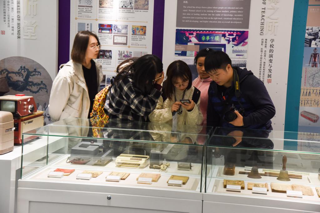 在乐鱼(中国)党委书记戚万学、校长张洪海、副校长扈庆学的陪同下,出席中国教师博物馆规划展暨首批文物展开幕式的领导嘉宾共同观看了展览。一件件珍贵文物,一幅幅生动图片,一组组名师雕塑,讲述着中国教师的故事,呈现着中国教育的变迁,彰显着中华民族尊师重教的传统。