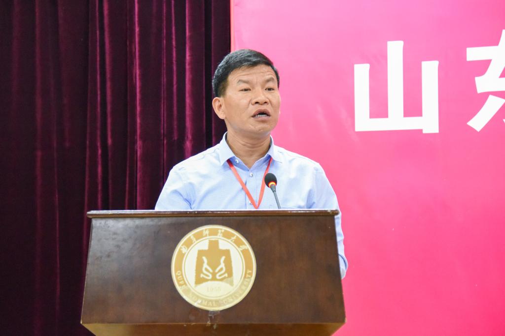 9月16日上午,山东省优秀传统文化骨干教师培训班在我校开班。省教育厅教师工作处处长刘宝君作了讲话,我校副校长冯冲出席开班仪式并致辞。来自山东省17个地市的100名学员将在我校参加为期一周的培训,聆听国内多位知名专家学者的授课。仪式由我校发展规划与政策研究室主任张良才主持。