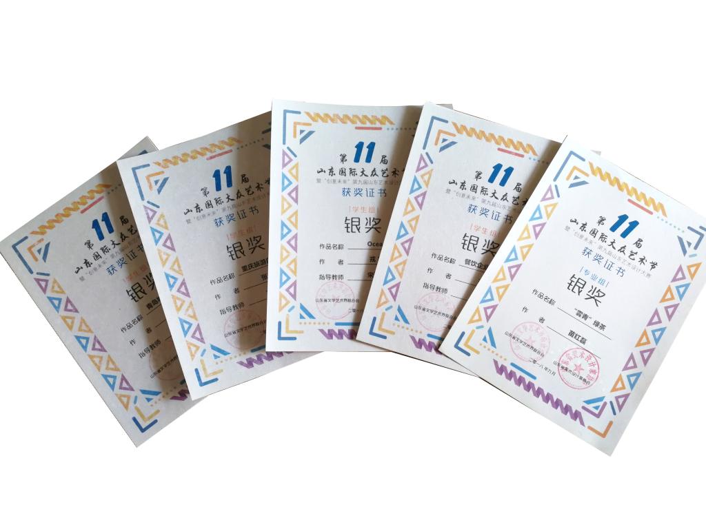 近日,我校美术学院学子在第11届山东国际大众艺术节暨“创意未来”第九届山东艺术设计大赛中表现突出,荣获3项金奖、5项银奖、3项铜奖,学院老师同时荣获优秀指导教师奖1项。