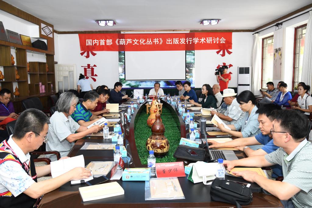 丛书首发活动期间,举行了《葫芦文化丛书》出版发行学术研讨会,来自全国各地的20余位专家学者汇聚一堂,深入研讨了丛书的学术价值和时代贡献,并围绕发掘弘扬中华葫芦文化进行了交流。大家认为,《葫芦文化丛书》的出版发行是弘扬传承中华民族优秀传统文化的生动体现,是讲好中国故事、传播中国声音的具体实践。丛书全体编纂人员系统发掘梳理文献资料,深入民间采集整理神话传说,对国内多个地区的葫芦文化产业、葫芦节庆、葫芦民俗等进行深入调研,为葫芦文化补遗、存史付出了辛勤的努力,丛书各卷从不同角度深刻阐释了葫芦文化的丰富内涵,研究成果接地气、有高度,小葫芦做出了学术研究大文章。
