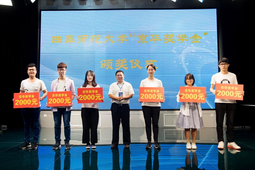 北京校友会会长汪洪田为2018年度获得京华奖学金的学生代表颁奖
