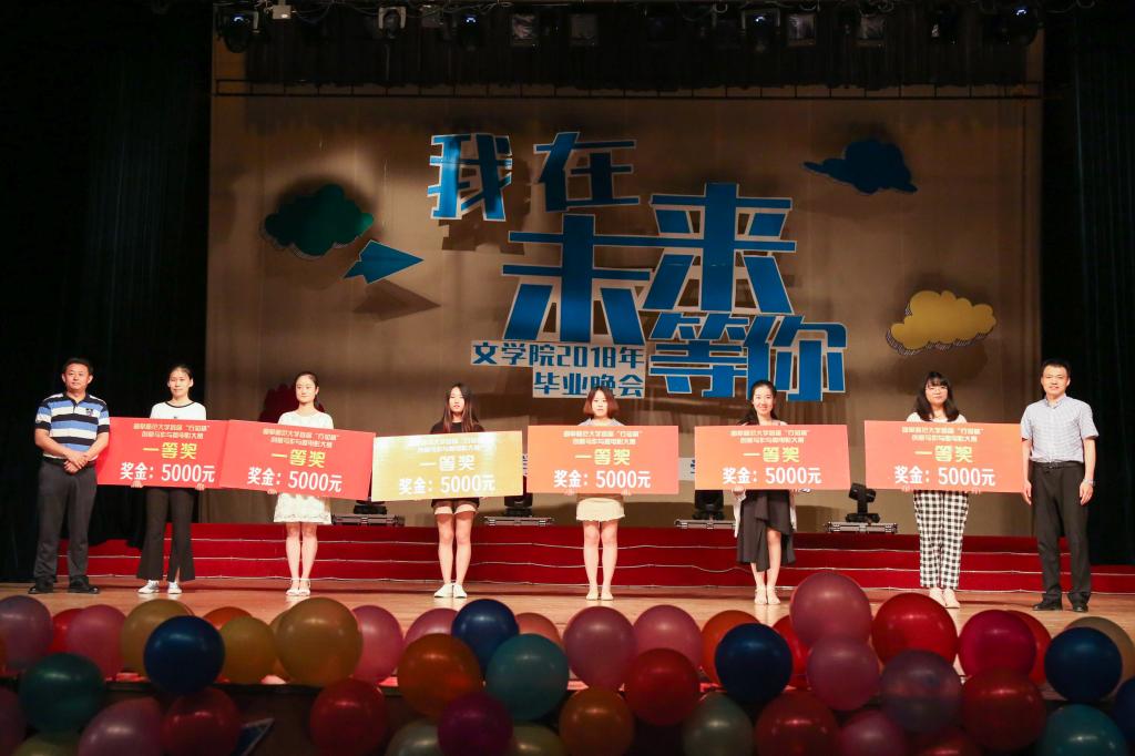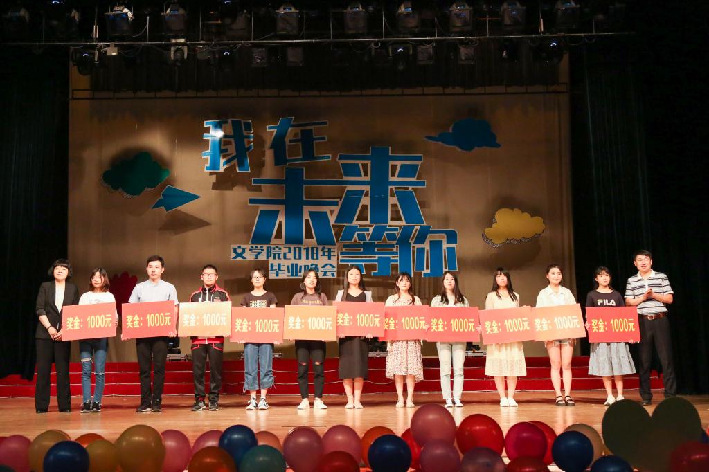 颁奖典礼结束后,文学院2018届毕业晚会暨“十佳学子”颁奖典礼举行,晚会以“我在未来等你”为主题,以回忆与展望为主线,借用歌舞、小品、音乐剧、诗朗诵等方式回顾大学生活、纪念深厚情谊、展望可期未来。