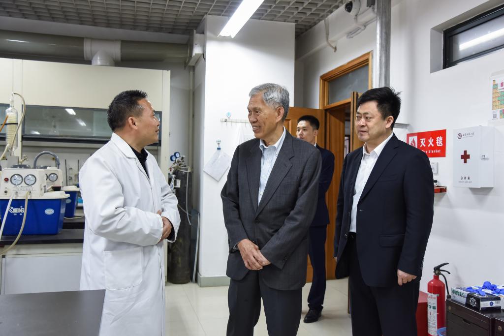 在田家炳实验楼,双方共同回顾了田家炳教育基金会2007年捐资援建我校实验楼的友好合作。田庆先先生一行走进现代生物学国家级虚拟仿真实验教学中心、化学化工实验教学中心,和我校师生亲切交流,听取了关于我校近年来在学科建设、科学研究和人才培养等方面不断取得突破的介绍