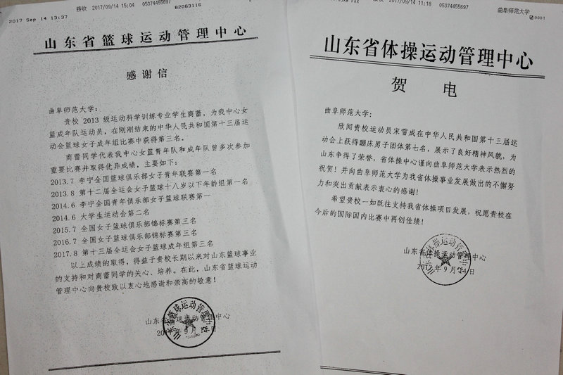 山东省篮球运动管理中心、山东省体操运动管理中心等发来贺电,祝贺我校学子在全运会多个项目上取得的骄人成绩,感谢乐鱼(中国)对山东省体育事业发展做出的贡献,并祝愿我校在今后的国际国内比赛中再创佳绩。