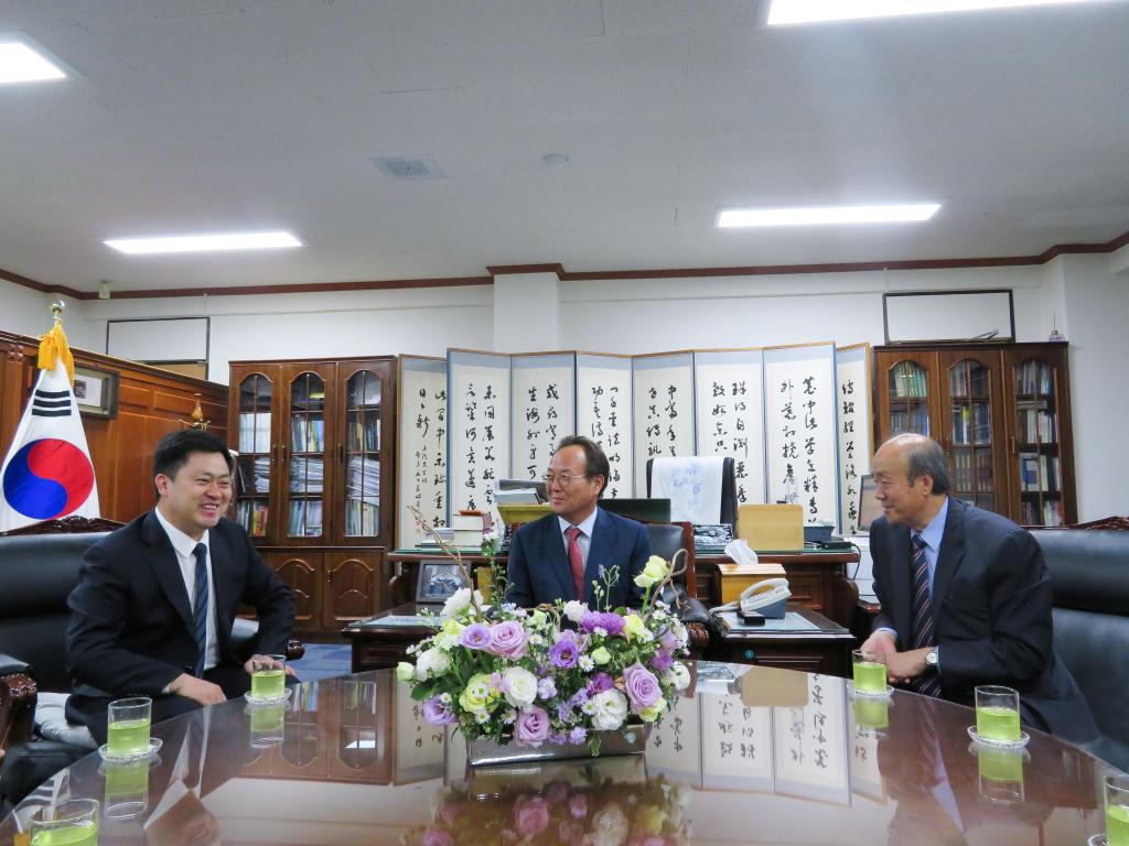 在平泽大学访问期间,平泽大学荣誉校长赵基兴和新任校长李宰弼分别会见了代表团。双方共同回顾了两校建立友好关系以来的交流合作情况,以及在各领域取得的丰硕成果。双方表示,彼此互为最重要的对外交流合作高校,将进一步深化本科2+2等项目的合作,不断拓展新的交流空间,促进两校事业的合作共赢。
