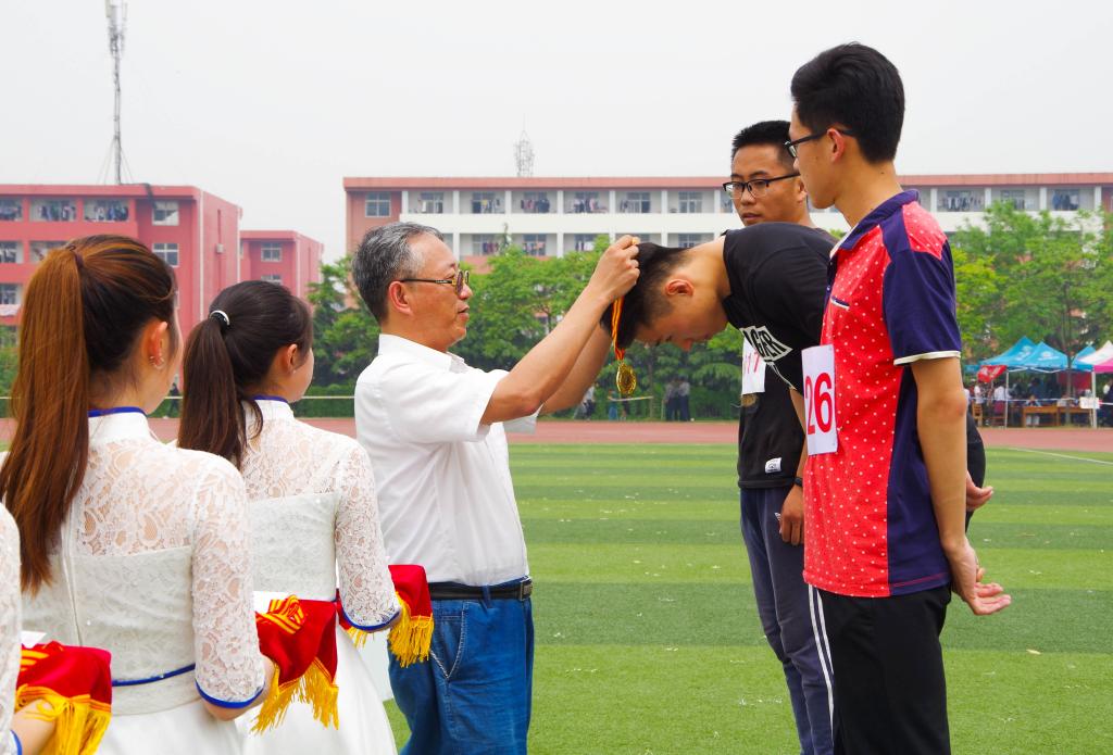 在上午和下午的比赛分别结束后,副校长杨冰来到比赛现场,为获奖的运动员颁发奖牌和荣誉证书,并与运动员、裁判员和工作人员亲切交流。