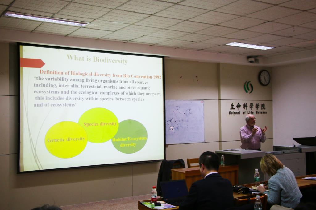 科克大学访问团与我校生命科学学院负责人进行座谈交流。双方就联合培养与科研合作等事宜进行了深入探讨。Paul Giller教授为生命科学学院全院师生作了“生物多样性危机——种群危机”的专题讲座。科克大学北京办公室负责人在孔子会堂为全校师生进行了合作项目说明会。