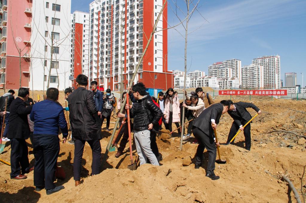 植树现场,我校师生分工协作、干劲十足,齐心栽种二百余棵法桐苗木,为美丽校园增添新绿。