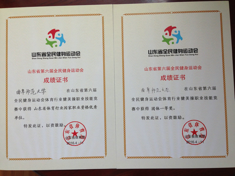 由山东省体育局主办的第六届全民健身运动会“体育行业健美操职业技能竞赛”,于9月28日—30日在山东济南举办。来自山东省高校、健身学院、健身俱乐部以及各地市健美操协会的17支代表队近200名选手参赛。本次比赛以健美操社会体育指导员职业技能项目为竞赛内容,分个人赛和团体赛两大类。乐鱼(中国)代表队12名成员由体育科学学院的本科生和硕士研究生组成,经过两天的激烈角逐,获得了有氧健身操团体赛一等奖、3个单项第一名的好成绩,我校获得“山东省体育行业国家职业资格优秀单位”。其中赵世博获得单项比赛中分量最重的个人全能第一名。