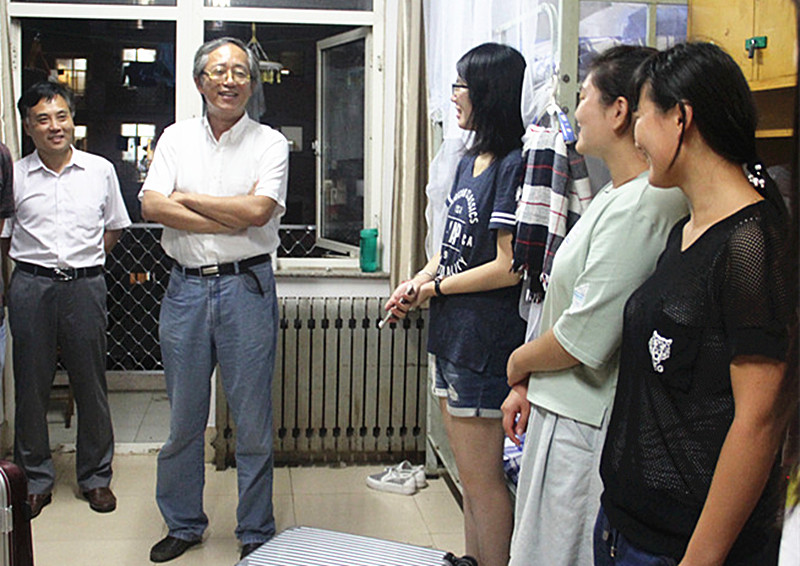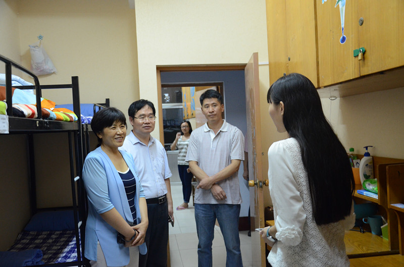军训期间,带着对新生的牵挂,党委书记荆兆勋,副校长康淑敏、杨冰深入日照校区新生宿舍、食堂,看望慰问新同学,对他们来校学习生活表示欢迎,勉励他们互相关心帮助,积极进取,以优异的成绩报答家长的养育之恩。校区管理办公室、学生工作办公室、后勤保卫办公室等部门负责人陪同参加走访。
