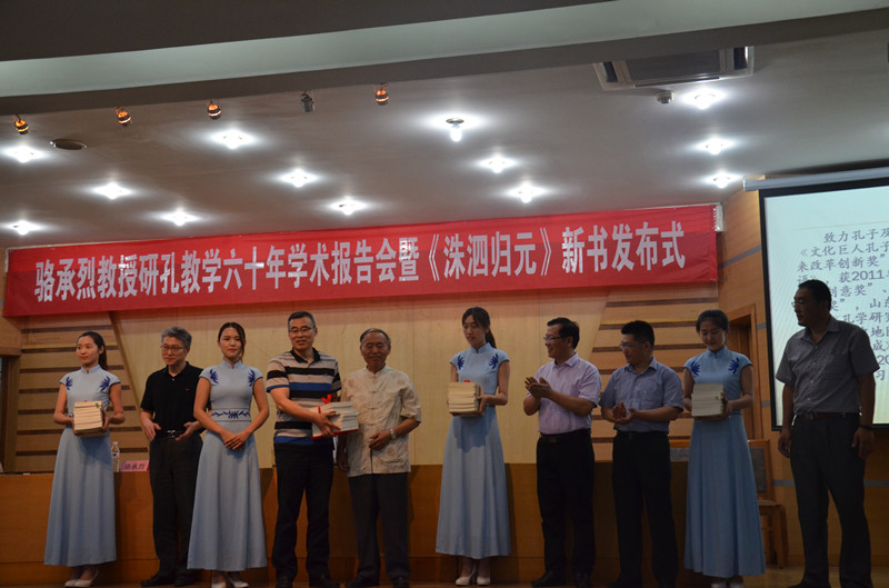 612日晚,骆承烈教授研孔教学六十年学术报告在孔子会堂举行。报告会前进行了骆承烈教授新书《洙泗归元》发布式,发布式上,骆承烈教授向我校图书馆、历史文化学院、孔子文化研究院、文学院赠书。随后,骆教授为大家作了题为“骆承烈谈孔子”的报告。历史文化学院院长成积春教授主持了报告