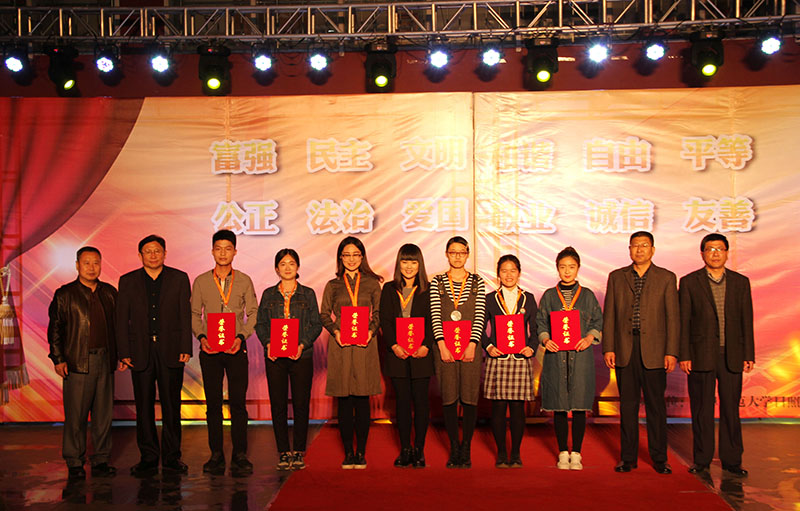 大会隆重表彰了来自11个学院的37名践行社会主义核心价值观先进个人,他们分别获得了见义勇为先进个人、孝老爱亲先进个人、诚实守信先进个人、志愿奉献先进个人荣誉称号。副校长康淑敏和与会领导嘉宾向获奖青年学子颁发了纪念奖章和荣誉证书。
