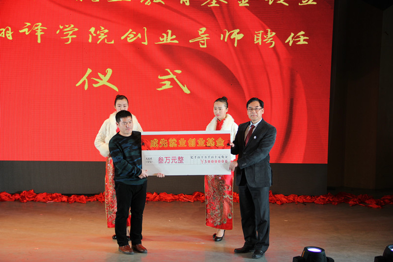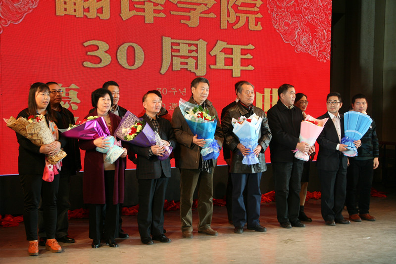 一段社会各界人士为翻译学院送祝福的视频集锦拉开了本次晚会的序幕。晚会伊始,1985级校友和在校生用诗朗诵的形式为大家带来了一场跨越三十载的对白,悠悠《犁牛之子》荡漾在舞台中央,也荡漾在每个翻译学子的心中;诗朗诵结束后,2015级同学为1985级师哥师姐们佩戴校徽,继而校友代表们为教师代表献上鲜花。三十年来,翻译学院为社会培养了大批外语人才。2004级校友张成先从上海专程赶来参加院庆活动,院长卢卫中对张成先董事长为学院捐赠创业教育基金表示感谢,并为他颁发乐鱼(中国)翻译学院创业导师聘书。