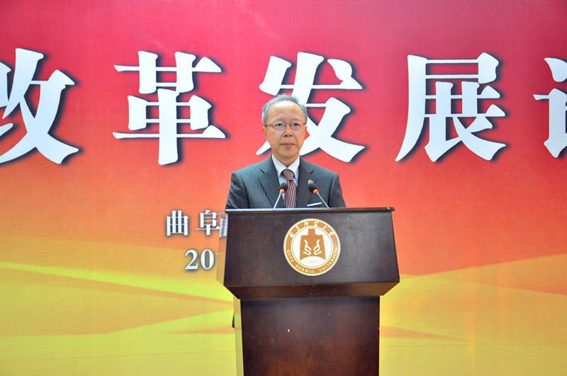 10月17日下午,我校主办的“大学改革发展论坛”隆重召开,30余所中外大学的书记、校长齐聚孔子家乡,在师范教育的源头,论道高等教育的改革发展,其中6所高校的书记、校长做了主旨发言。论坛由我校校长戚万学教授主持。